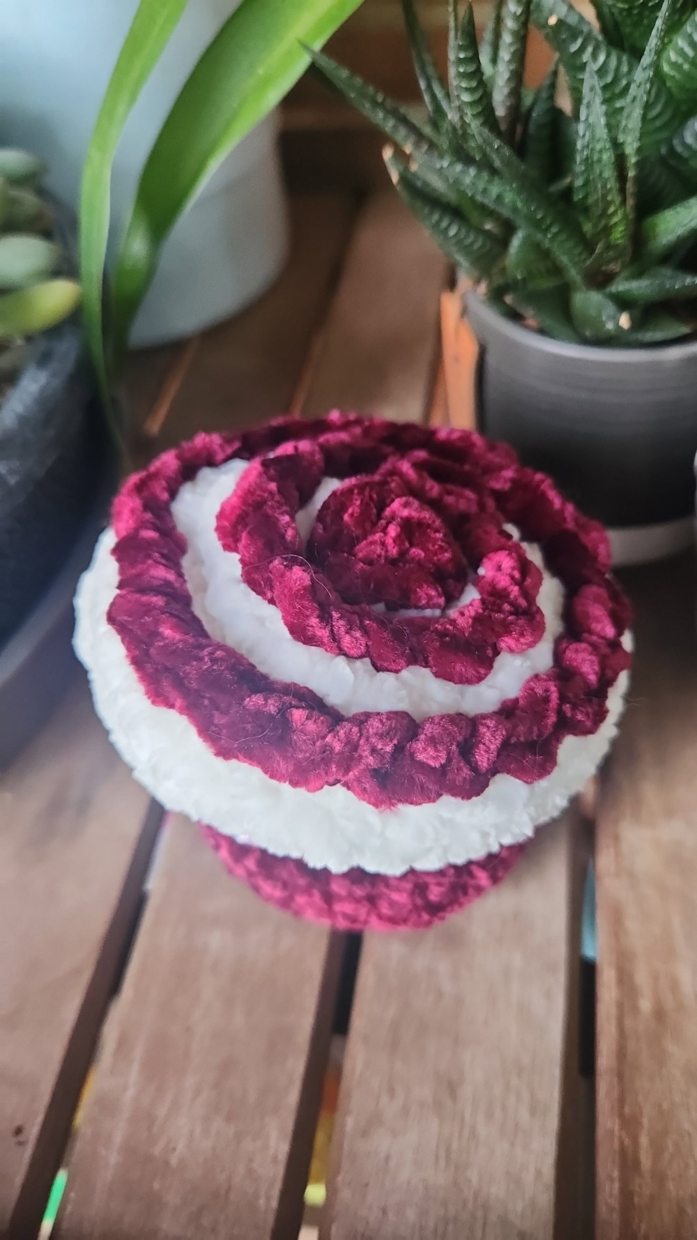 Handmade with love from ultra-soft yarn, Raspberry Beret is perfect as a desk buddy, cozy shelf decor, or a one-of-a-kind gift for someone who loves a little quirky flair.