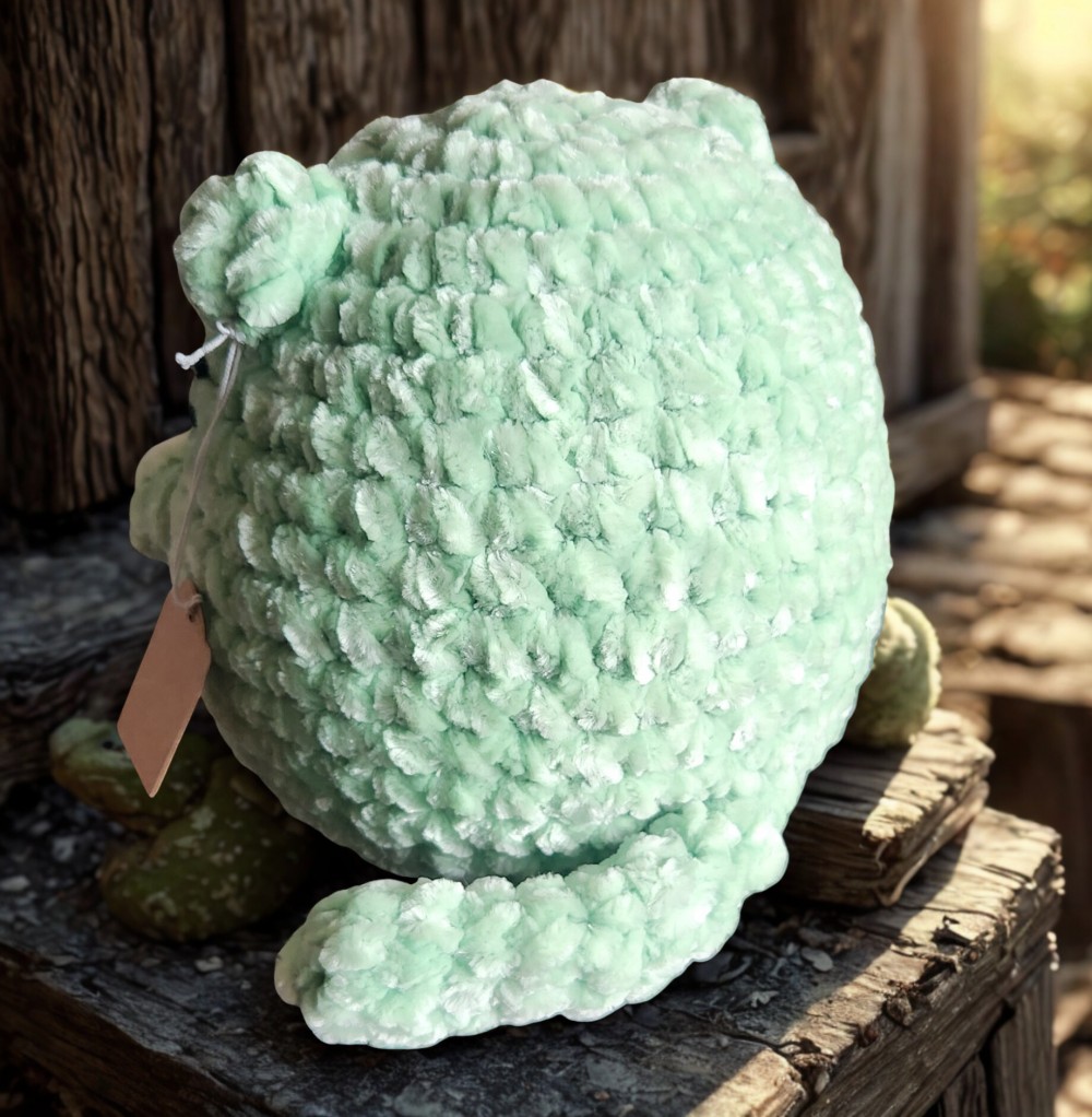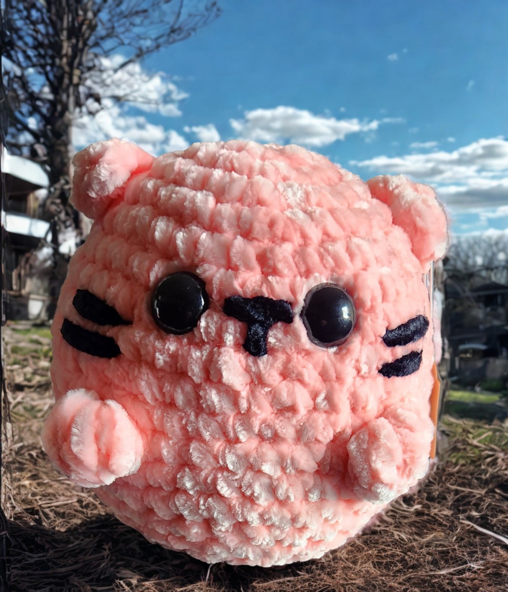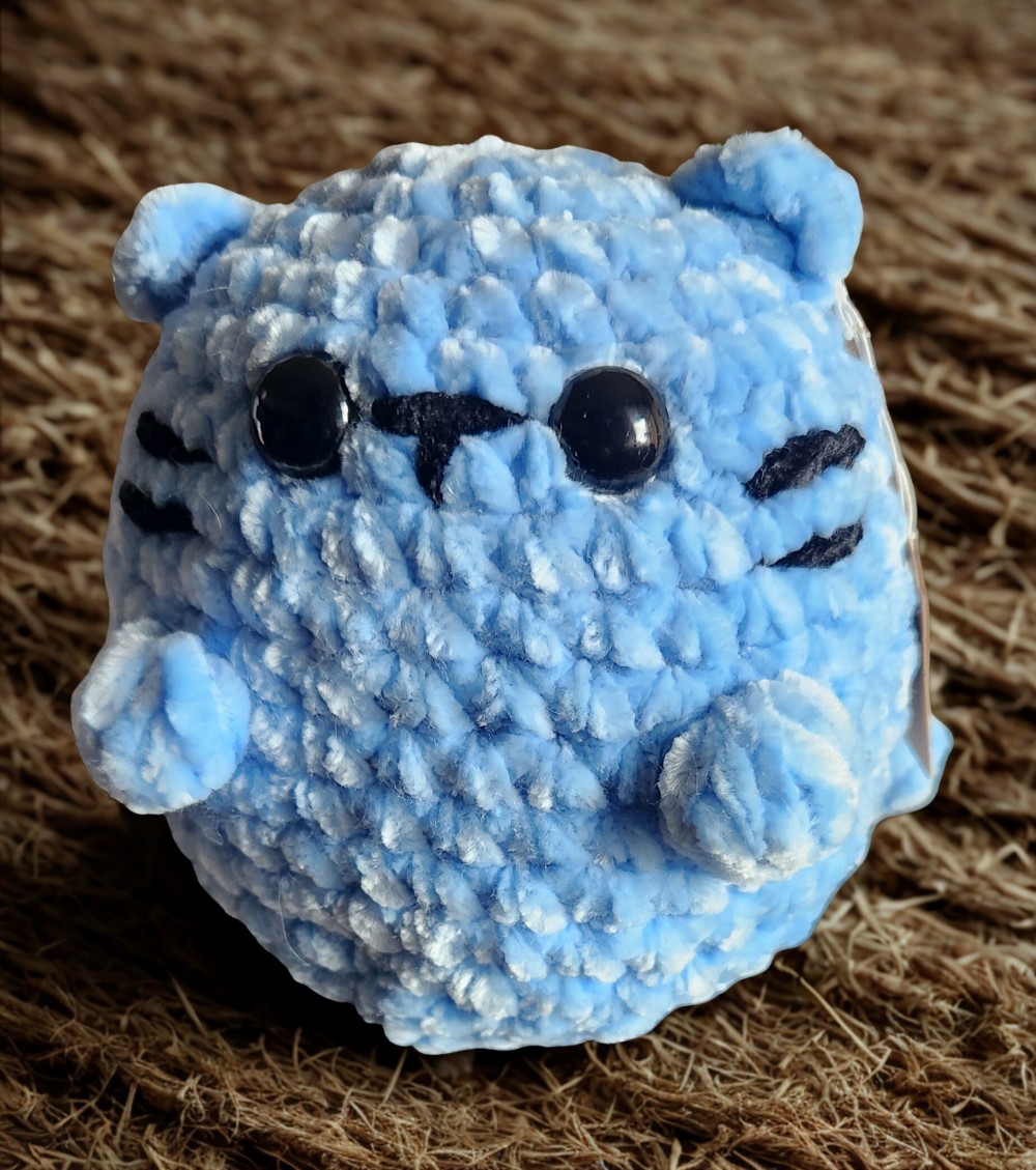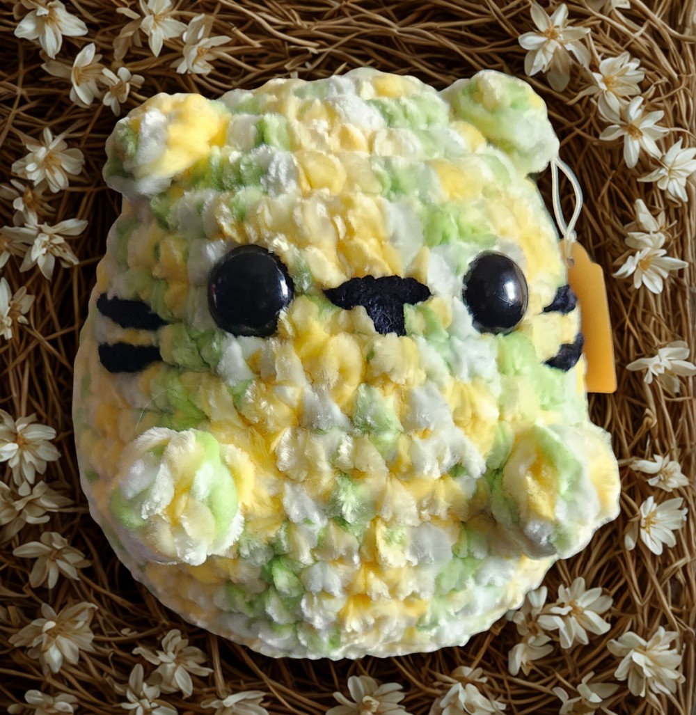 This handmade chubby cat plush is crafted with ultra-soft chenille yarn, giving it a chunky, cozy feel that’s perfect for cuddling or display. Its small, rounded shape and adorable design make it a sweet and comforting addition to any space.