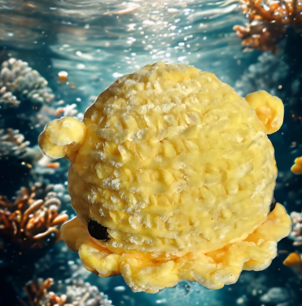 Measuring approximately [insert size if you’d like], this plush is the perfect size to sit on a shelf, desk, or be gifted as a unique and cozy friend. Each cuddlefish is carefully crocheted with attention to detail and features securely attached safety eyes and a soft, sturdy design.