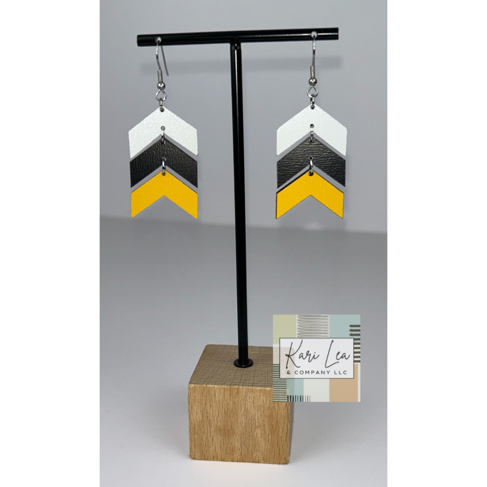 Chevron Dangle Earrings - Missouri Inspired (Black/Gold/White) Tarnish-resistant, nonfading, and sensitive skin friendly (hypoallergenic for most people)