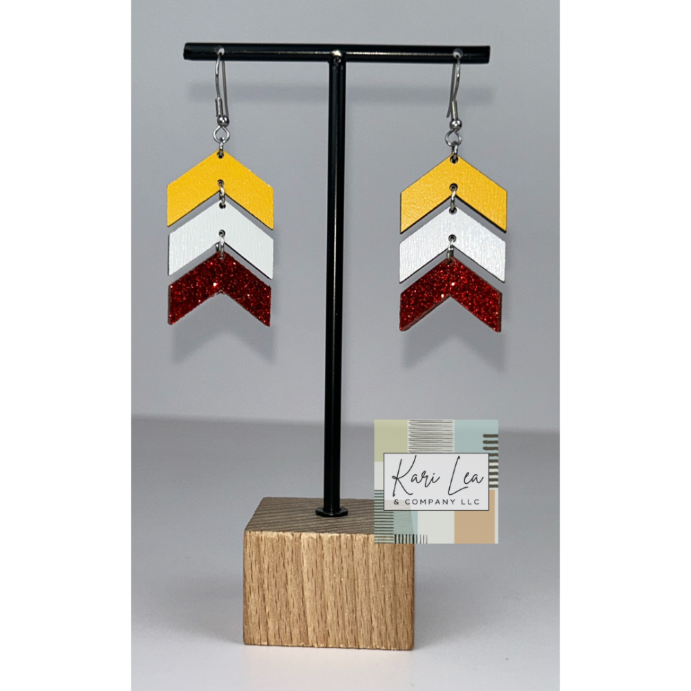 Chevron Dangle Earrings - KC Inspired (Glitter Red/White/Gold) Tarnish-resistant, nonfading, and sensitive skin friendly (hypoallergenic for most people)