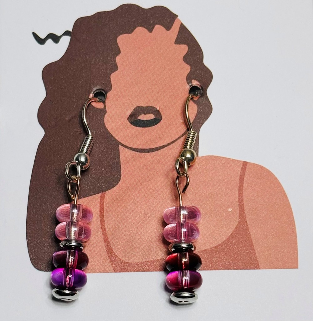 Handcrafted pink beaded earrings made with careful attention to detail. Each pair is thoughtfully designed to highlight the natural beauty and character of the beads.
