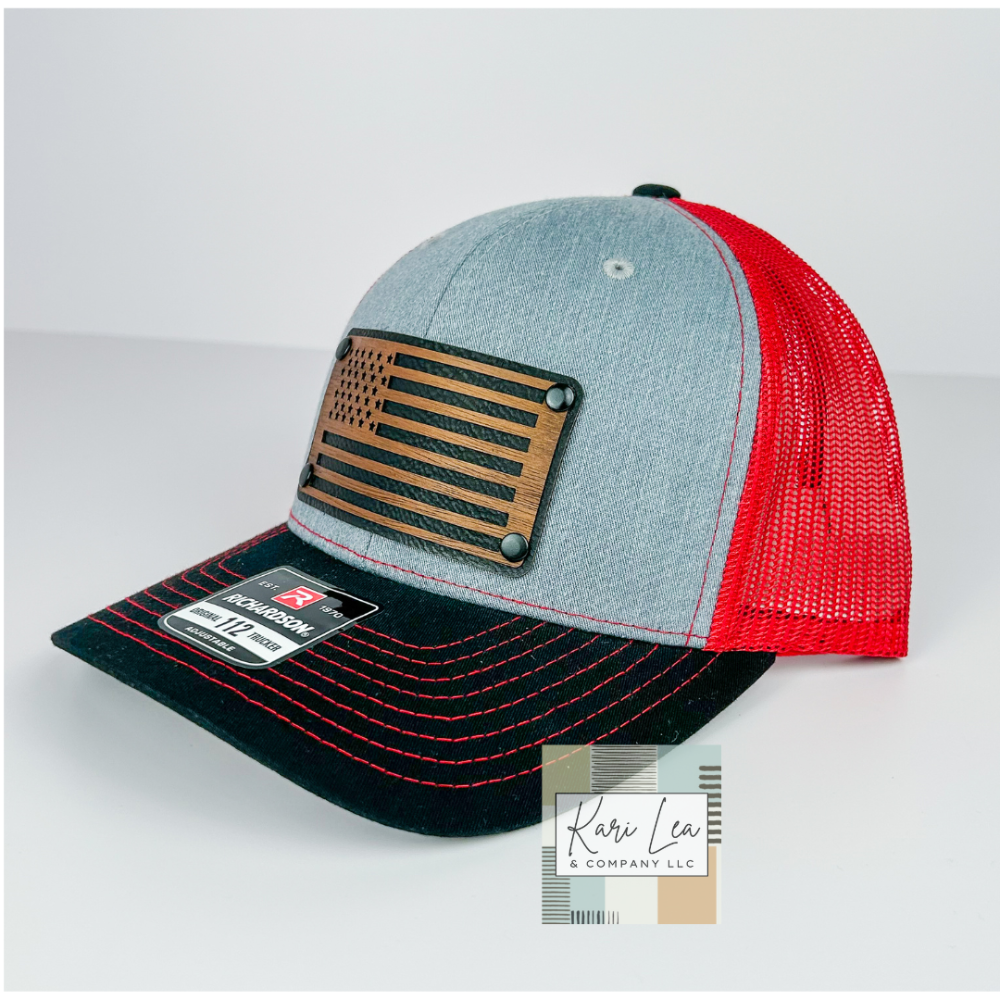 Red/Grey/Black Richardson 112 - American Flag w/Black Rivets