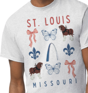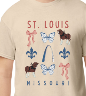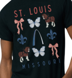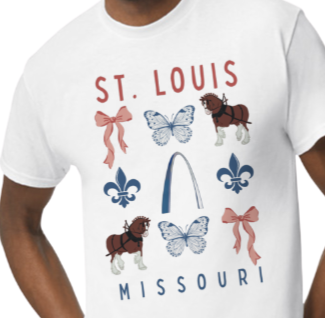 St. Louis Missouri Croquette T-Shirt Design featuring Clydesdales, butterflies and arch.
