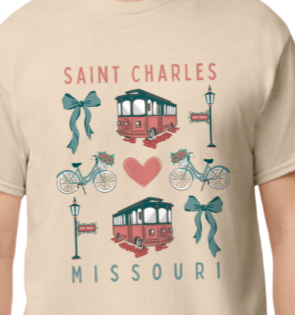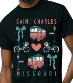 This St. Charles Croquette design highlights the charm of the area with the historic trolley, classic bicycles, and other beloved symbols that represent what makes St. Charles special.