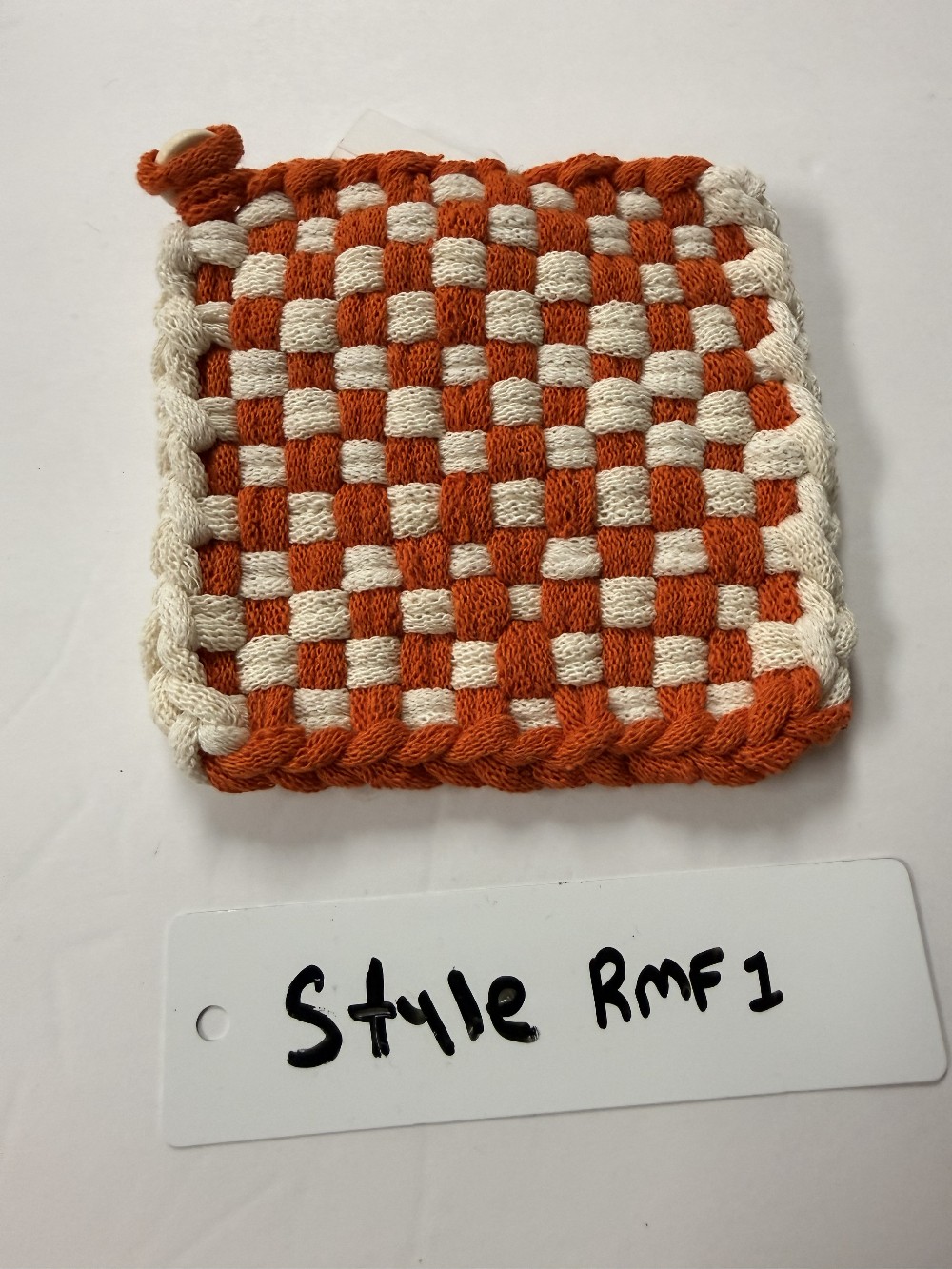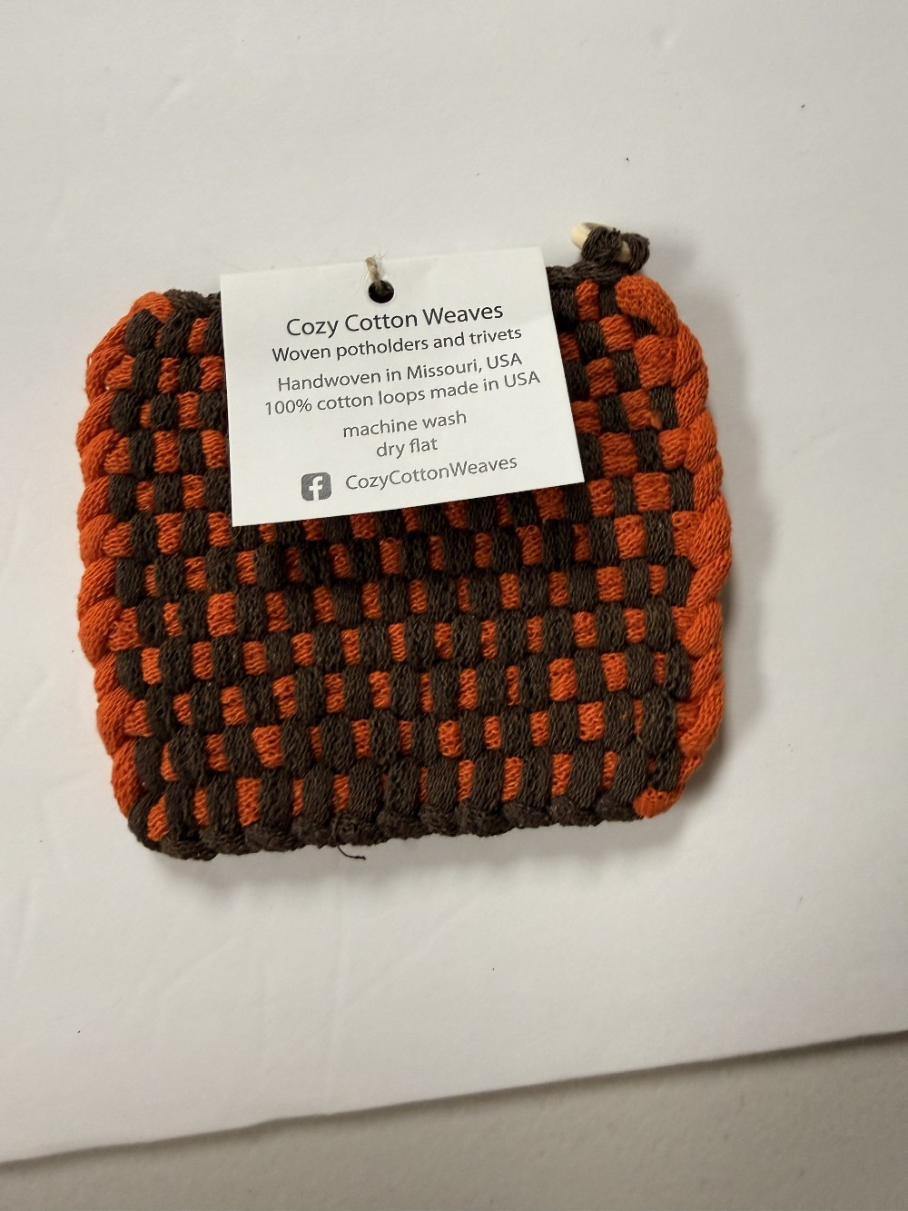 100% cotton. Machine wash/air dry. Approximately 4.5" x 4.5"
