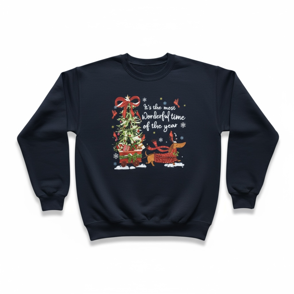 Home / Unisex Holiday Shirts / It's the Most Wonderful Time... Dog and Sleigh Crew - Online